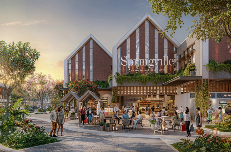 - Tiếp giáp các khu nhà phố thấp tầng và cả khu căn hộ cao tầng, Spring Market, Spring House, vòng xoay Springville