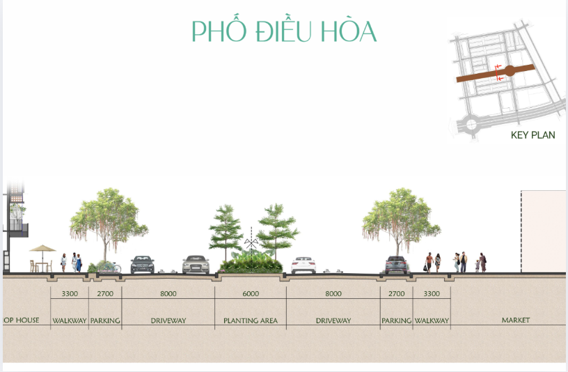 Mặt cắt thể hiện cấu trúc Phố Điều Hòa